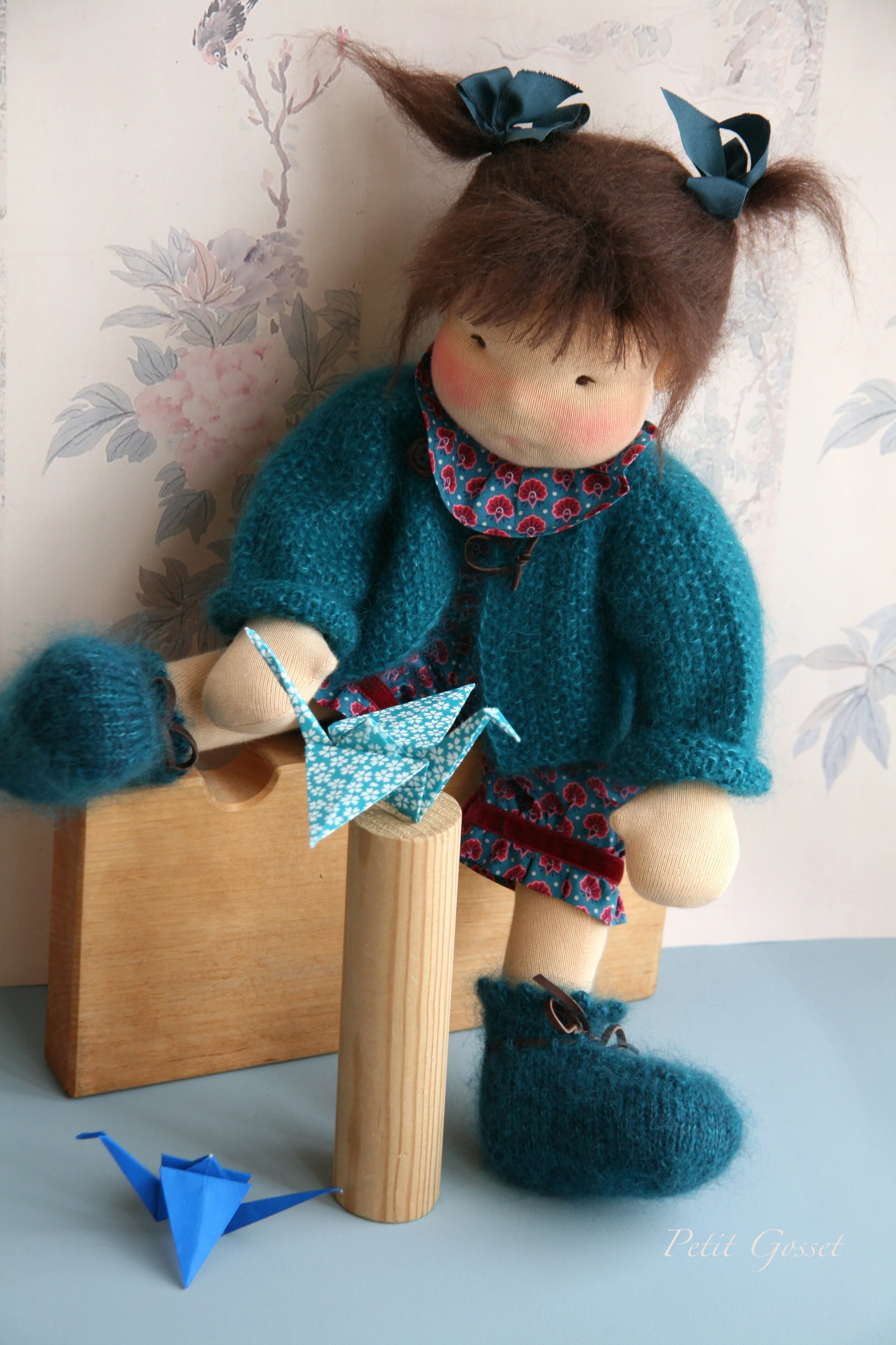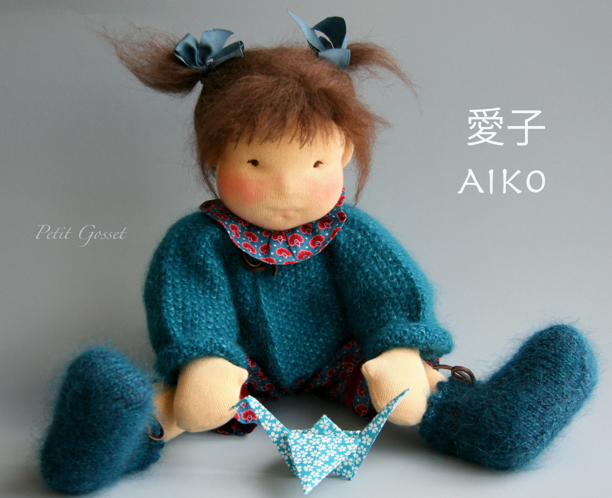 The inspiration for my doll Aiko magically came to me one late evening. My children and I were talking about love and gratitude in our daily lives and in different cultures, and an old Japanese legend came to my mind. As I read the legend to my younger sons, a pair of loving eyes of a just-begun doll were looking at me from the table...